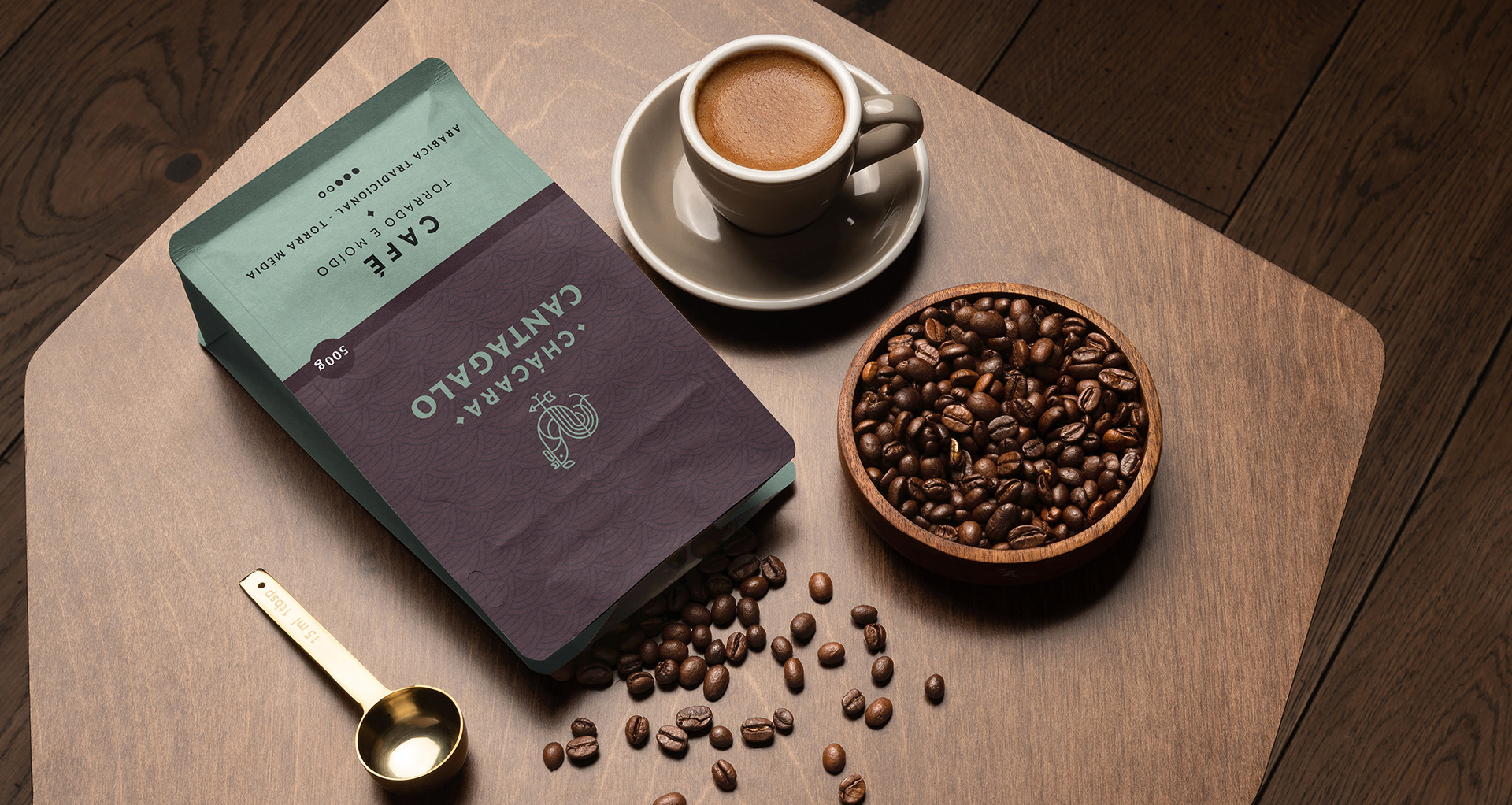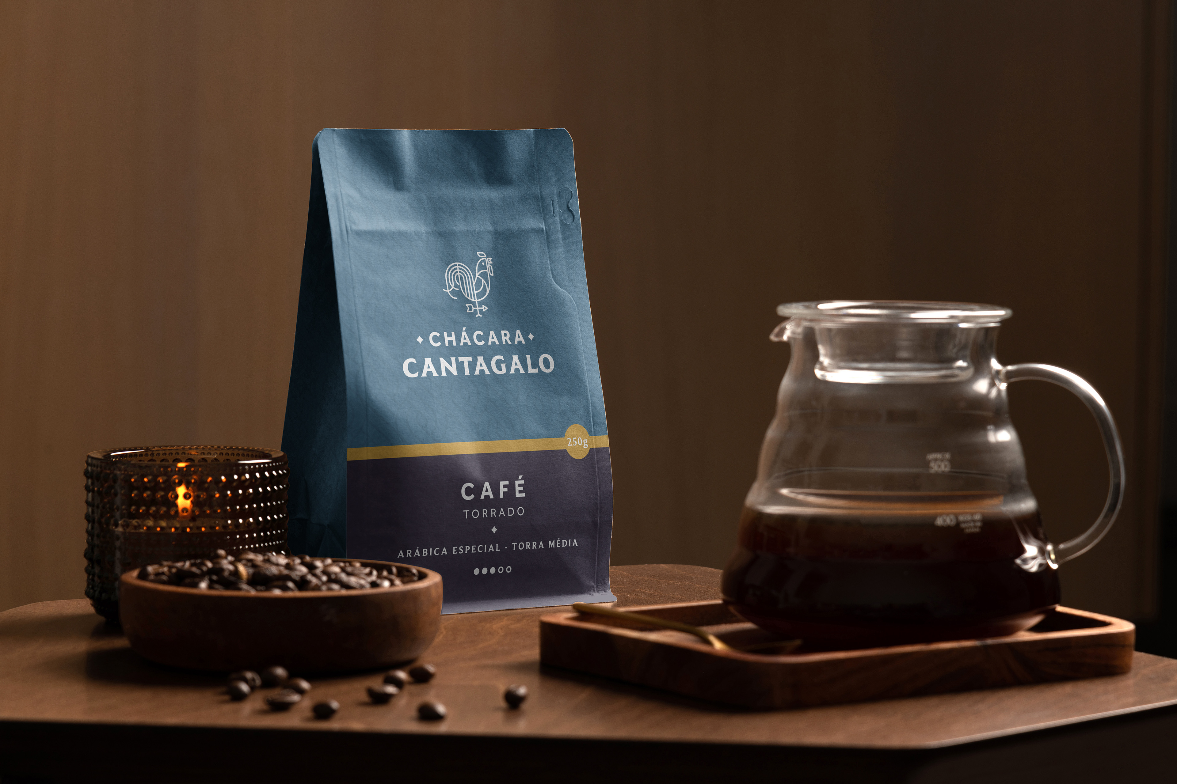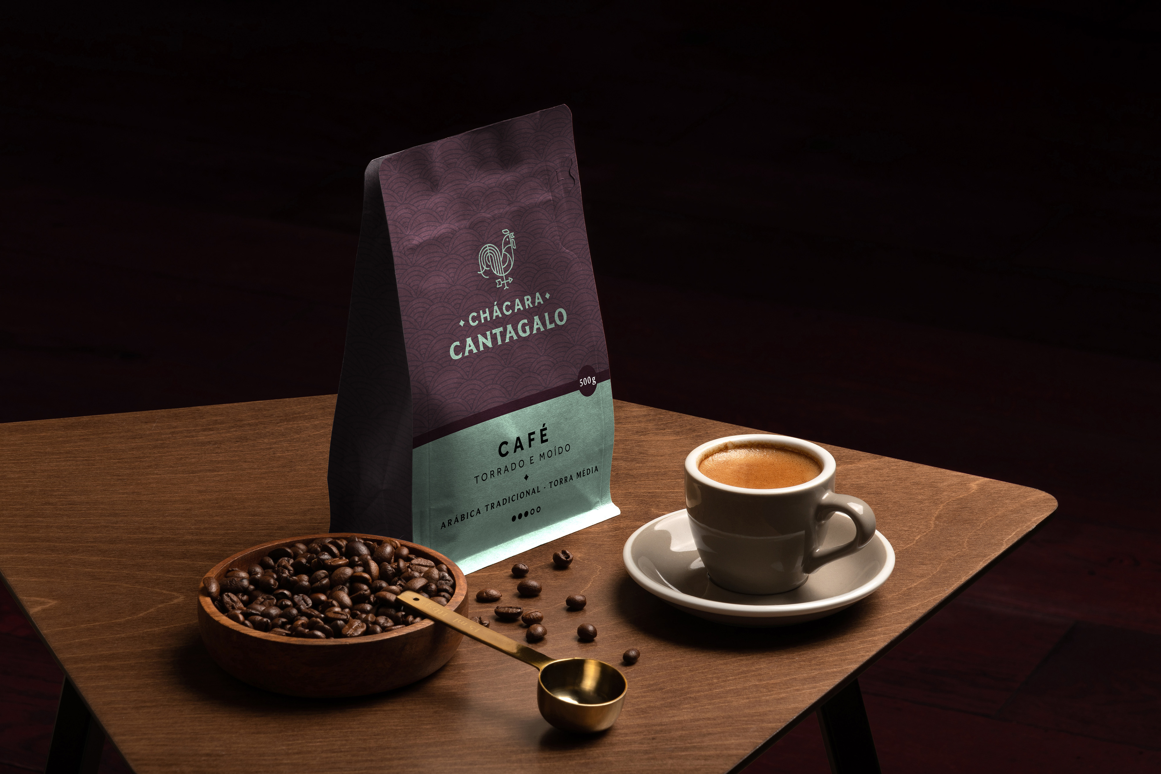 Projeto de identidade visual e embalagem para o Café Chácara Cantagalo, que é uma empresa familiar onde fazem o beneficiamento do café, torra e moagem artesanal.