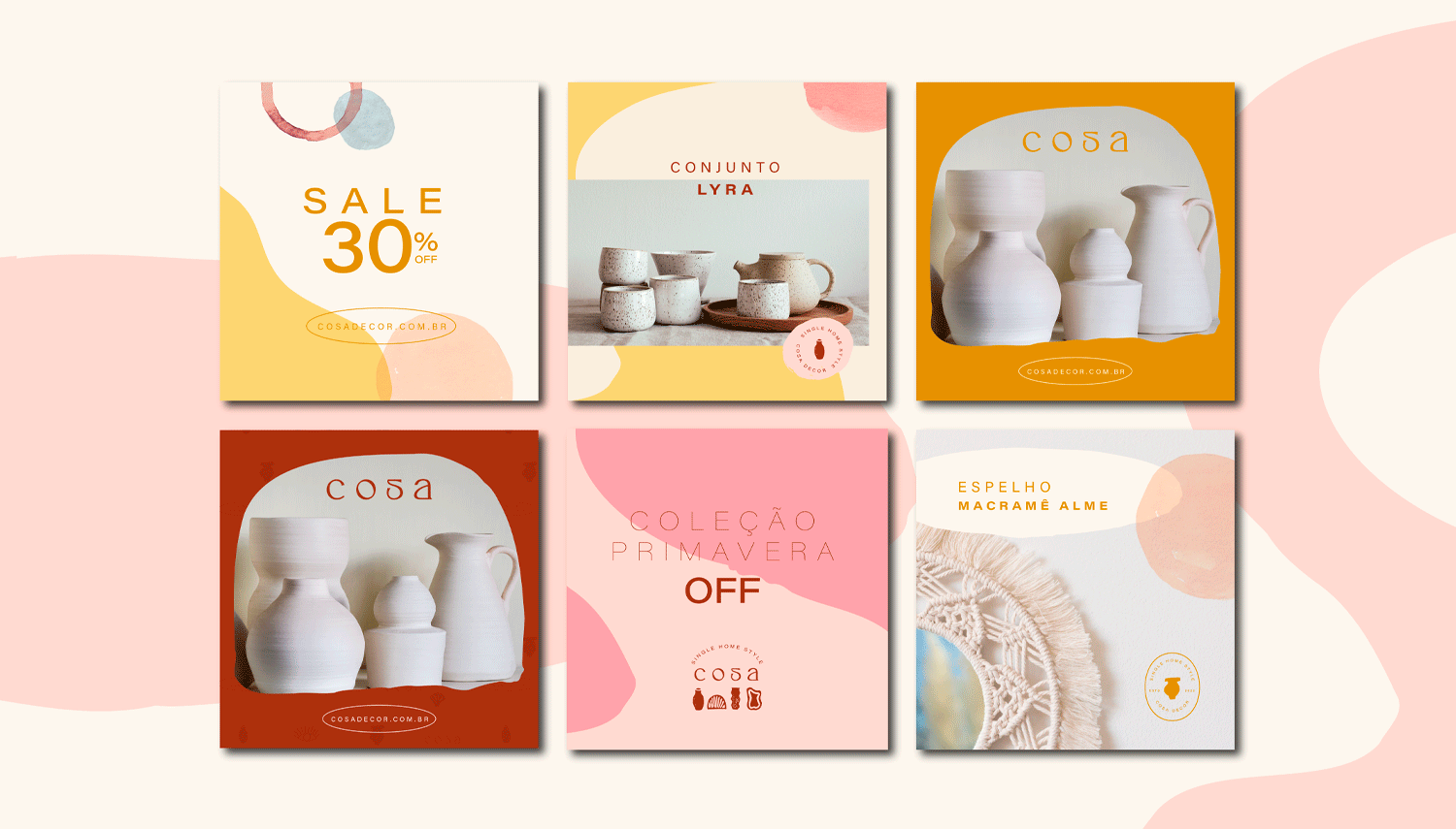 Projeto de identidade visual - COSA DECOR. A marca tem a proposta de compartilhar arte, personalidade, peças autorais e mobiliários. Cosa valoriza o fazer e a autenticidade dos pequenos detalhes.
